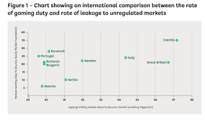 In other words, the authors of the study the committee is citing say that the 'bearable' rate of tax is much lower than the committee is proposing while other studies suggest that gambling taxes may already be too high. Finally, the committee publish a graph apparently showing no correlation between gaming duty rates and 'black market' gambling. It is not clear what the selection criteria was for this, but there are obviously a lot of countries missing. Moreover, it's not just gaming duty but the overall tax burden that really matters.   The vertical axis stops at 40%, which is below the committee's recommended tax rate, and two countries with higher tax rates are conspicuously absent. France and the Netherlands were both mentioned in the unfathomably influential Social Market Foundation report  (which the committee cites) as countries to emulate. As the SMF says, "the Netherlands is changing its remote tax rate from 30.5% to 37.8% in 2025...  And France has a remote sports betting rate of 55% – increased to over 59% in 2025." How are those two nations getting on? The situation in the Netherlands has been such a fiasco that the head of the SMF begged the committee to ignore it. The Dutch now do half their gambling on the black market, according to the Netherlands Gambling Authority. Meanwhile in France...