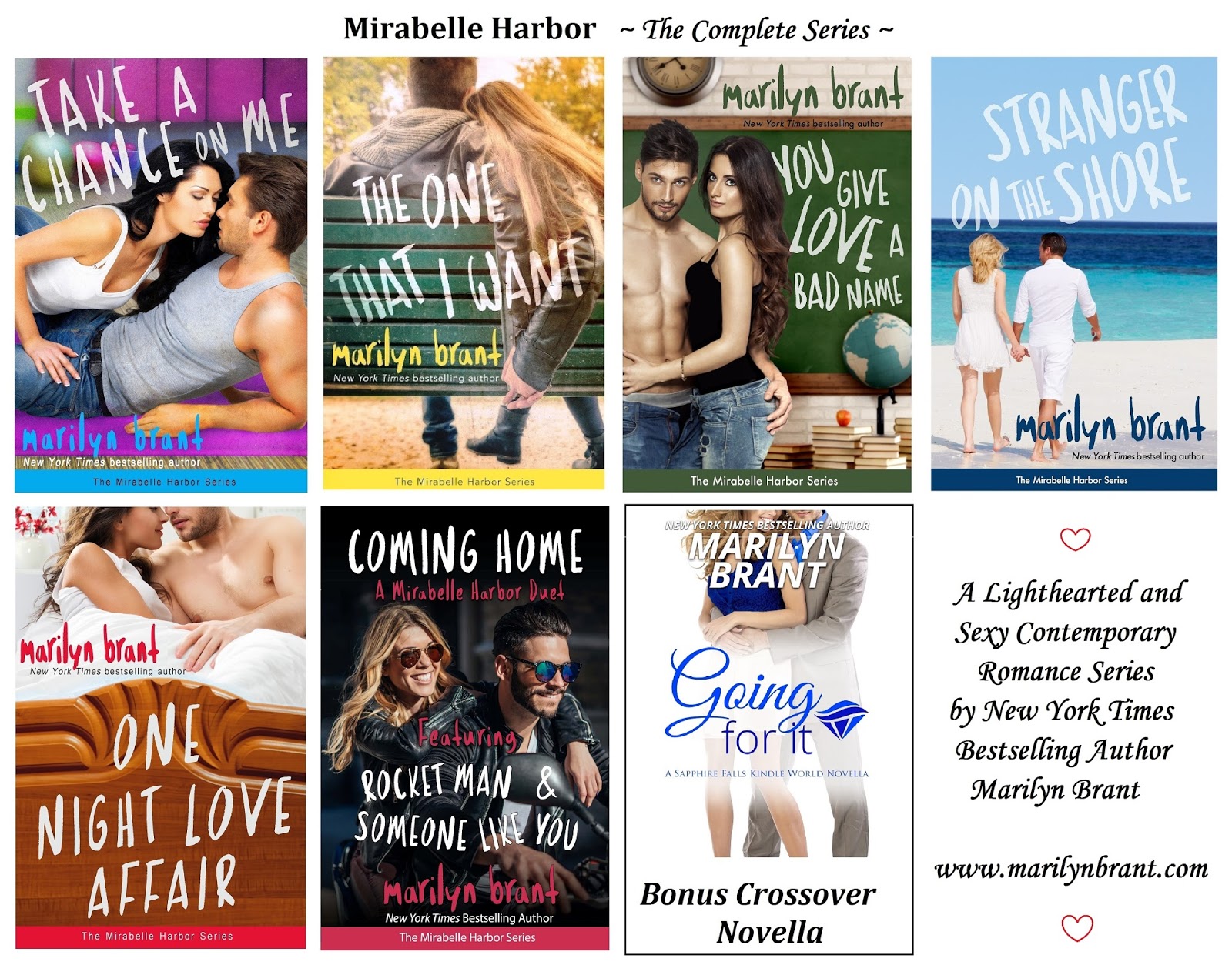 This fall, it'll be three years since I started writing the Mirabelle Harbor series, and the final book to wrap up the Michaelsen family's (and their friends') romances will be released then!!To date, there are five books (Take a Chance on Me, The One That I Want, You Give Love a Bad Name, Stranger on the Shore, One Night Love Affair) and one crossover novella ( Going for It ) in this contemporary romance series. The final two novellas -- Rocket Man & Someone Like You -- will be combined into one book called Coming Home. (Story summary and cover to be revealed soon!!)