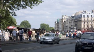 The booksellers on the Left Bank line the balustrade along the Seine