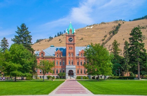 Looking across the Oval toward Main Hall, University of Montana