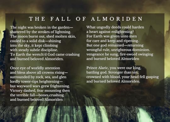As I edit book four of my fantasy series, The Chronicles of Almoriden, I have thought a lot about how poetry influenced my fantasy novels. I write a lot of poetry that is not tied to my fiction, but I have enjoyed having poetry be an important part of my fantasy world.