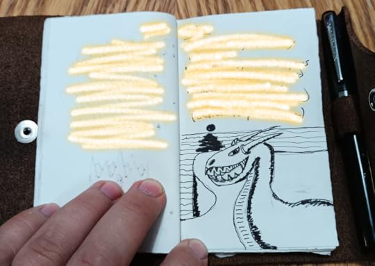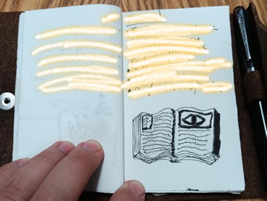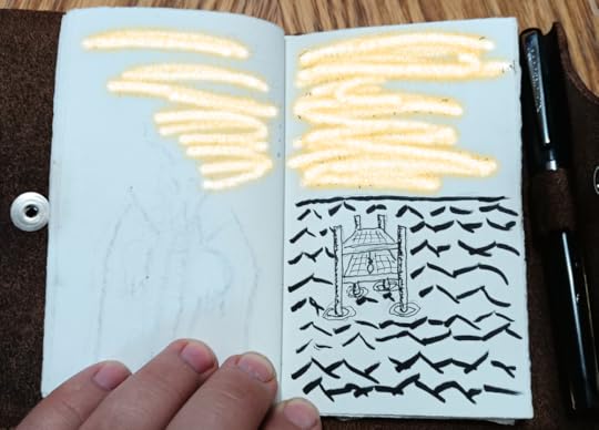 I am not very talented at drawing (after all, I started writing because I found that writing was easier than making the art for a graphic novel), but visualizing helps me focus and makes the ideas more real than the tentative words. I like to devote half of my page to notes and the other half to a drawing.