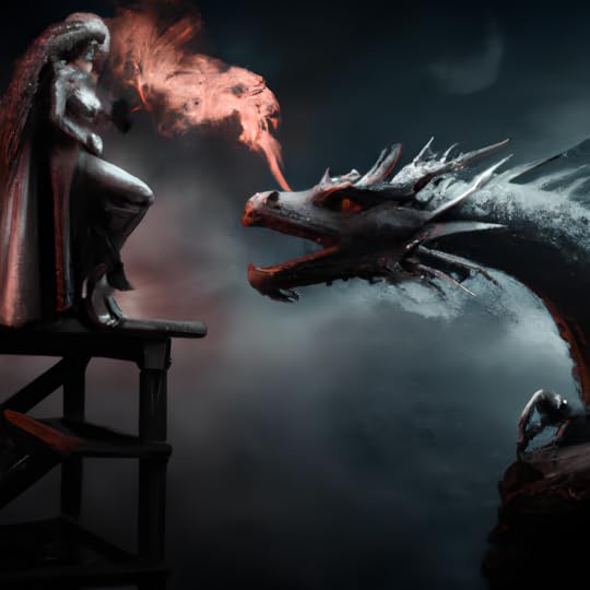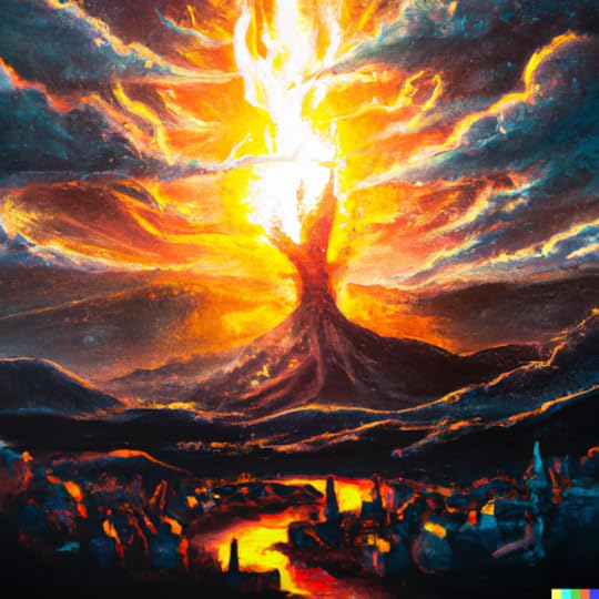 In addition, I have been looking for cover art that works well with the concepts I am exploring. I always create a cover for my book before NaNoWriMo. The first cover does not always end up being the final cover, but it is an important placeholder. The cover makes the novel real, even before it is written. Usually, this means pouring over databases of public domain artwork. However, I have been using the AI image creator Dall-E 2 to bring some of my ideas to life. Here are a few concepts I am considering for the cover: