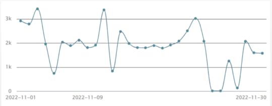 The DataMy goal was to try to write 2,000 words each day (333 words over par). For the most part, I was able to do that.