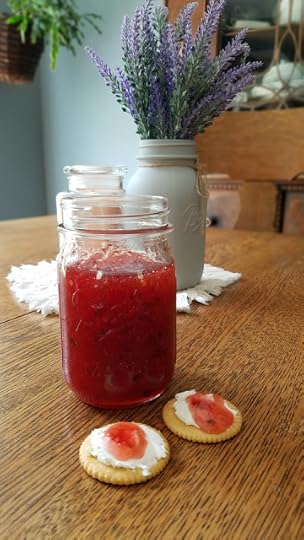 This year has been my year of canning. I've become a canning fool, so to speak. I've canned beans, tomatoes, bread & butter pickled jalapenos, dill pickles, and now I've tried my hand at jellies. And not just the plain Jane grape jelly, but a sweet & spicy jelly that is sure to add some zing to your next cheese tray.I found this recipe online and everywhere I looked, the reviews were raving in spite of the odd combination of strawberries and jalapenos! Most suggested it was best over crackers and cream cheese, but some mentioned it was great to drizzle on grilled meats or spoon over vanilla ice cream.