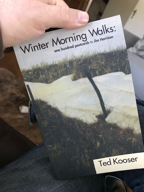 With all those words and all the observations behind me, I have retreated to the writing shed to try to shape something, to figure out how all those walks come together, how they fit into each other, how they resonate, why their collectiveness should mean something bigger than a single walk. I am reminded of great literary walkers and of great books about walking. A colleague suggested I read Ted Kooser's book of poems, Winter Morning Walks. I have started. It's brilliant and beautiful. So, here I am, in the shed, writing, shaping, thinking. This, in many ways, is yet another mini adventure. Not a physical walk, but a mental one through all the walks that came before. It's a good place, this shed. With its books and its painting of Dylan Thomas' boathouse, and art and photography from my sons and stepdaughter.