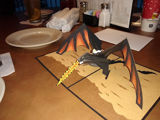 Even though my birthday is not until next week, my wife and her sisters decided to celebrate it yesterday. We went out to a local restaurant where they presented me with a couple of cards. The presentation of gifts was forbidden--has been for some time. My wife managed to find the best birthday card I've ever received. As you know, I like dragons. I write about them and love watching them in movies--especially dragons that have a relationship with people. My primary reason for watching Game of Thrones is because of the dragons. Look at the card she got me: