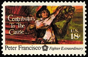 For nearly 60 years, Massachusetts, Rhode Island, and Virginia have observed March 15 as Peter Francisco Day to honor my ancestor, the Portuguese-born patriot, who was kidnapped and abandoned by pirates, then bought as a slave. He won his personal freedom and, ultimately, that of a nation, by enlisting and serving in the Continental Army. March 15, 1781, was the date of the Battle of Guilford Court House in North Carolina, during which Peter Francisco fought with fury unparalleled in military history. Wielding the incredible six-foot broadsword fashioned for him by George Washington, Peter cut down eleven British Grenadiers.