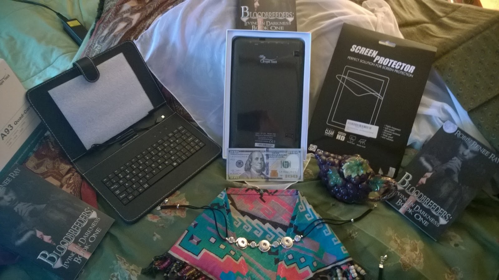 Some items from 1st Place Prize~ The tablet is a Dragon Touch A93 Quad-Core