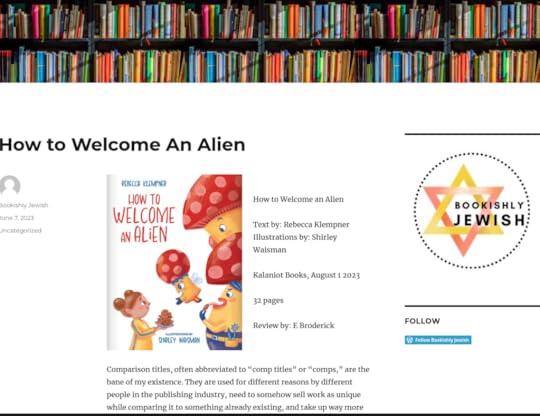 Shirley Waisman’s fabulous cover for my forthcoming book, HOW TO WELCOME AN ALIENThis picture book would never have happened without my writing group friends: Ann Koffsky, Devorah Talia Gordon, Linda E. Marshall, Fredd...