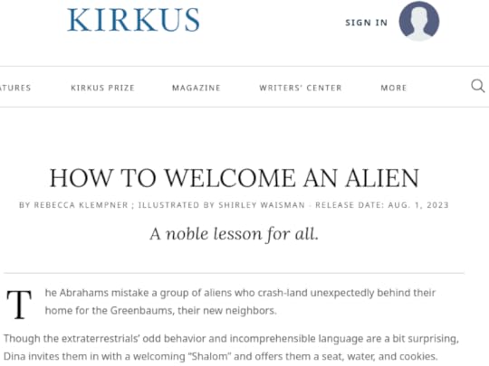 Reviews in Kirkus can greatly influence people’s interest in a new title, particularly the interest of bookstore managers and librarians. Therefore, I was greatly relieved to see a postive review for HOW TO WELCOME AN ALIEN up on their site. If you want to read the review in full, you can find it here.