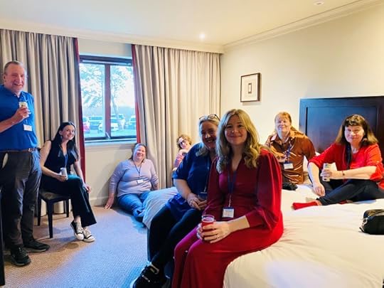 I took some spare minutes to edit my current manuscript The Back of Beyond and generally unpack my case and drift from bar to lounge before it was time for registration. Each year we get a lovely tote bag as a memento of our weekend, and of course there is the book shop, because you cannot have too many books! There’s also the traditional room party…I was mortified at the amount of gins-in-a-tin that graced my bin the next day…