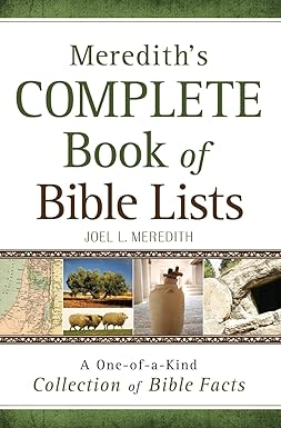 This new volume combines Joel Meredith's two books of Bible lists for a total of 375 lists! Includes easy access to lists like the Ten Commandments, the gifts of the Spirit, and the Beatitudes. But it doesn't stop with the expected. It also offers lists of people raised from the dead and people who were struck blind. Readers will also discover surprising Bible facts, like animals God used miraculously, bald men in the Bible, and nine of the earliest recorded inventors. Lists are organized into 39 categories. A great resource for students, families, or anyone wanting to learn more about the Bible.