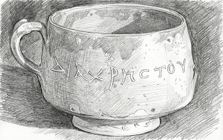 The extraordinary thingabout this cup is the inscription upon it. Most scholars now believe the cupitself was manufactured and fired in Western Asia Minor sometime in the firstcentury B.C. At a later time, the cup was inscribed. The inscription isbelieved to have come from the first half of the first century A.D., with manyscholars placing the date at 50 A.D. or earlier. This would mean theinscription was carved into the bowl less than twenty years after Jesus wascrucified.