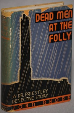 Dead Men at the Folly (not to be confused with Agatha Christie's Dead Man's Folly) dates from 1932. My copy is the US edition, emblazoned with the legend 'A Dr Priestley Mystery', even though the crusty old professor doesn't play much of a part until the story until the closing scenes. The majority of the detective work is conducted by Superintendent Hanslet of the Yard, ably assisted by a capable local cop called Inspector Richings. One entertaining feature of the story is the way the cops defer to Priestley, following his instructions to the letter once he stirs himself to take an interest in the mystery.