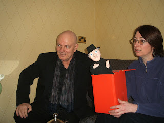 And finally, let me sign off this blog post with a favourite photo. For one event in CrimeFest, John Baker became unavailable (yes, even twenty years ago, diaries were a challenge). So Cath created a puppet of John to take his place on the panel!