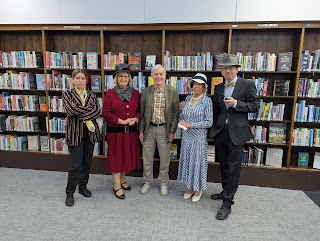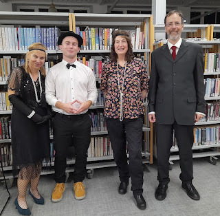 First came a visit to Penrith, a town (and library) I really like, and then on Friday I headed to Keswick to check out some bookshops and also do some research for the next Rachel Savernake novel, which is set around Derwent Water. It's always good to get the real feel of a location, and I believe it does make a difference (for the better) to one's writing. Then it was off, via Kendal, to Barrow-in-Furness, and another excellent evening ensued. The actors this time were members of the Ulverston Outsiders am dram group (photo at the top of this post). Like the library volunteers who took the suspects' parts on the other two evenings, they really got into the swing of things.