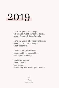 I am genuinely looking forward to 2019. I don’t think I’ve said that about a year in a long time, not even last year. Especially not last year due to the timing of my ‘New Year’s’ post. But, this year is different. This year, I’ve put the hard things behind me. This year, everyone is healthy and my life is settled. This year, I can focus on moving forward instead of just trying like hell to stay afloat.