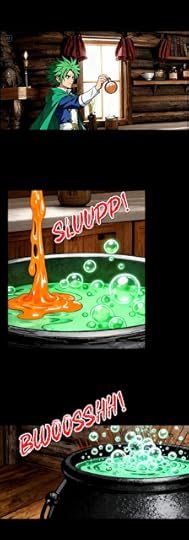 Pall the Wizard and Lora the Sorceress, man and wife, work together to concoct a mysterious potion.