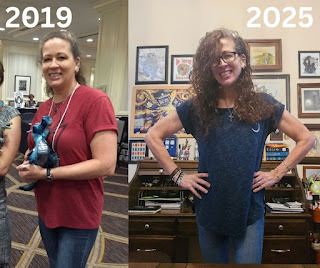 Last time I posted -- which, yeah, has been a few months -- I said I might start sharing some of my health journey here. I decided the easiest way to get that ball rolling is to show you what I posted on Facebook back in February, including before and after photos. That first photo is me at the Realm Makers writers conference in July 2019, which is why I'm holding a dragon. Not that it's so ra Read more of this blog post »