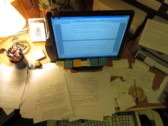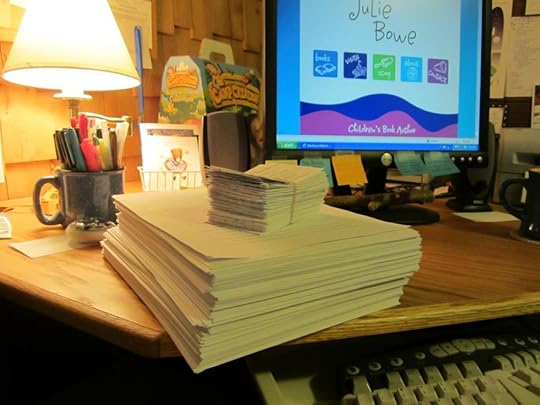Cleaning my little corner of the world these days. Here are the drafts and scribbled notes for the story I'm working on. It's with my editor now. There will be lots more drafts and scribbles before the story becomes a book in 2014. But, for now, it's nice to see progress stacked up all neat and tidy.