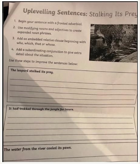 The other day, I happened upon the image shown here that had appeared in a Michael Rosen blog post and that was being commented upon on social media. I confess that I can’t remember if I saw it on Twitter or on Facebook; whichever, I tried to find the conversation again and ended up spending loads of time looking with no success. So I gave up. However, I do recall that all the comments made were along the same lines: it’s ridiculous; it’s insulting to our children; I was never made to do stuff like this; why don’t children read more; children should be made to read more etc etc. I only glanced at this post in passing and didn’t have any intention to get involved in the debate. But when, two days later, I was still thinking about it in any idle moment, I realised that I needed to address some of the issues it raised with me. There are quite a few, and absolutely none are intended to engage in an argument, to contradict any of those who commented or to be the definitive answer. They’re just things that occurred to me that I wanted to share. Firstly, I teach English at secondary school level; I’m not a primary teacher. We don’t tend to use worksheets like this, but I can absolutely understand why primary schools do. The issue I would have with this particular sheet is not the tasks that the children are being asked to complete, but the line that says: Use these steps to improve the sentences below. And within that line, the only word I object to is the verb ‘improve’. The assumption that adding clauses and conjunctions and noun phrases will ‘improve’ the existing sentences is utterly subjective and something that’s impossible to prove. If the verb used was ‘change’, I think it would be completely fine. Teaching children the component parts of sentences, and the ways in which you can add or move clauses around to enhance or change meaning, is an essential part of the job of teaching them to write. Encouraging them to experiment with language and sentence structure and vocabulary is brilliant. It’s what they need to do. To all the people who say ‘I was never taught this and I’ve done OK’ I want to reply, ‘Well done you but it’s not like that for everyone!’ I don’t remember being taught any of this either. Writing well is something I’ve always been able to do; I had an intrinsic understanding of how language works and how to manipulate it the way I wanted to. But my experience is not the point. Just like any other skill, there are some people who seem to get it innately and all the rest - the vast majority - who need to be taught. We all know this is the case with physics or Spanish or even art. To pretend that that it is not the case with English is completely ridiculous. Personally, as a secondary school teacher, I’m really pleased if children are being introduced to this stuff in primary school. It means that, one day, I might be able to shelve my lessons on subordinate clauses and how to use a semi-colon. That would leave me free to concentrate on all the wonderful texts we study in secondary school, all the opportunities to engage in creative writing and immerse ourselves in the wonderful world of English. Secondly, I think it’s really important to understand just what exactly it is that primary school teachers are expected to do. Unlike secondary teachers, they are not specialists - they have to teach English, maths, science, history, geography, art and often PE and music as well. Could you do that? Any of you who want to toss this worksheet in the bin? I couldn’t; that’s why I went into secondary. I only ever have to teach the subject that I know really well and am entirely comfortable and confident with. I could not teach children to build electrical circuit boards or solve fractions or paint water colours or play the ukelele. Even in the secondary school world, we are so overloaded with planning, marking, teaching, data, meetings, duties and extracurricular activities that, frankly, if anyone resorts to a worksheet to make their life easier, who can blame them. I work at least ten or eleven hours a day and I’m sure primary teachers do the same. So cut the teachers a bit of slack, please. Thirdly, I need to address this issue of ‘children should be reading books.’ Yes, of course they should. So do you have the magic solution for how to do this? If you do, you could make yourself very, very rich. I was at school more years ago than I care to dwell on but suffice to say, some people I knew read a lot and some people read absolutely nothing at all other than what they were compelled to. Even then, the proudest boast of many of the pupils in my school year, on walking into our English Literature ‘O’ Level (closed book in those days, as they are again now) was, ‘I haven’t even read the book yet.’ This was said with a laugh and a jeer as if only losers actually read the set text before being examined on it. This was long before the days of the internet, mobile phones, computer games of any sort or any diversion whatsoever except the television. There was nothing particularly compelling to take the attention away from the wholesome influence of books, yet many, many, many young people didn’t read. Just like today, many young people don’t read. It was ever thus. I have three daughters. The house is full of books, stuffed from top to bottom. Books are regularly given and received as presents to treasure. Outings to the bookshop are a treat to be relished. I write books! We have no wii, playstation, nintendo or x-box, although we do have an ipad and computers. I read non-stop, including often whilst cooking or cleaning my teeth. Everyone in my family reads; my children will never see me, my sisters or my mum without a book by their side. Yet though the oldest and the youngest one read avidly, the middle one does not. She says books are boring, they just go on and on before they get to the interesting bit and she doesn’