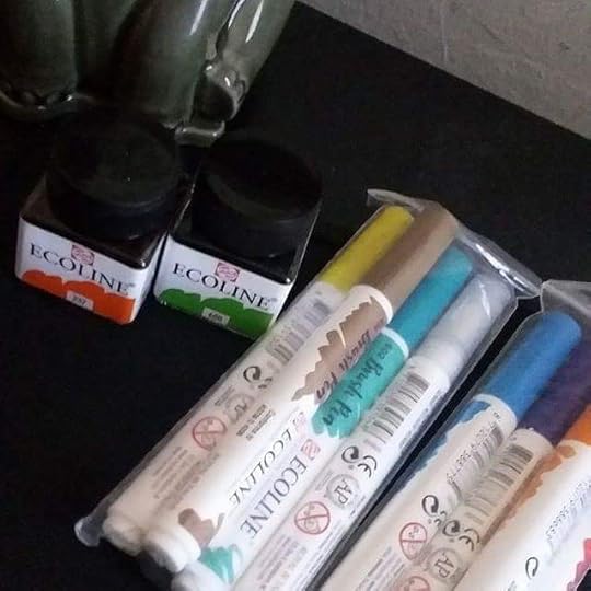 But, as I was saying earlier, I'm pretty sure that's because of the combination of tools I was using and the wood canvas. I'll definitely be adding Ecoline products to my supply and I look forward to using them on regular watercolor paper.