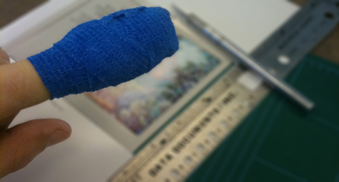 This is my finger. Those are indeed the offending implements that caused the bandage. As there won't be a poem this weekend – it'd be impossible to keep my thought flow on my typewriter – I'll probably be slowing the blog for a week, too. Or maybe this'll force me to become more axiomatic here. Let's try it now: