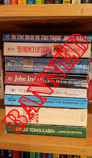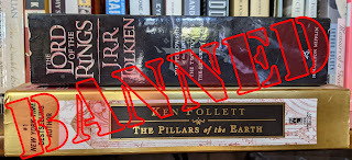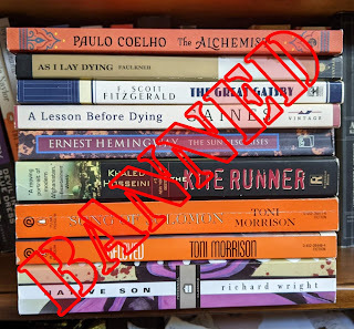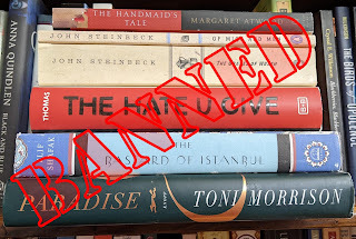 All of the photos included in this post include books from my bookshelves thathave been banned at some point according to several banned books lists I found on the internet. Going through the lists, I see many others I've read but don't currently have copies of.