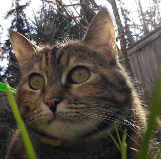 She loved going outside on her leash and exploring the backyard and chirping at birds. It became her one-on-one time with her human Mama. She also really liked it when her kitty siblings were waiting at the door when she came back in and would sometimes wait for them if they weren't there. She loved to sit in the window to watch birds, and feel the fresh air on warm days. On cold days, she loved to sit in front of the blazing fireplace.
