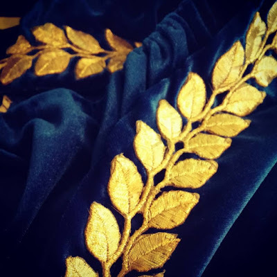 And lastly, here is a little peek at what the costume for the cover of The Beast With Silver Eyes (a very subtle peek). Sumptuous velvet trimmed in silver (which looks a little gold in the yellow light).