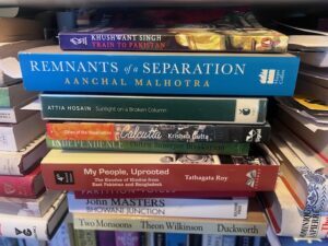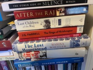 Partition – the 80th anniversary of this historic event will be in 2027. It is one of those subjects for which I can never do enough research, or do enough justice to the stories of those who lived through it. By focusing on my main characters, I’m trying to hammer out one story out of the millions of possibilities that exist. The story includes the jaw-dropping experiences of an Anglo-Indian woman, Edie, based on my aunt’s life in India, as well as a Muslim family who leave for the newly-formed Pakistan, and a Hindu family who stay. For those of you who don’t know, I have family on my father’s side in India and my father was brought up there in Kolkata – then Calcutta. I have longed to know more about this history which intersects with some personal stories of my relatives – now all sadly passed on. Here are my research books – such a lot of reading.