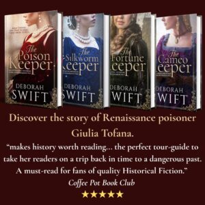 GIULIA TOFANA SERIESThe Cameo Keeper continues to do well, with some lovely reviews from readers. I have just read the proposed pilot script of Episode 1 for a TV series based on these books. Fingers crossed that a producer will want to make it because the screenplay is fabulous. There are now four books in the series. Thank you, those who have read, rated or reviewed and kept these books in the public eye. Here’s the link to them all.
