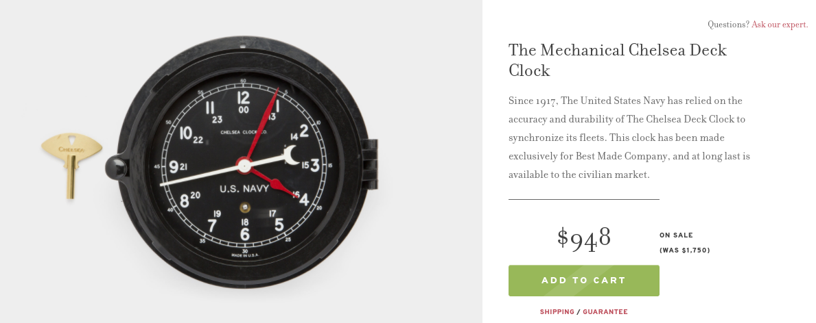 (You could also buy a deck clock direct from the manufacturer for like $200 but that's just silly when you can spend five times as much with Best Made.)