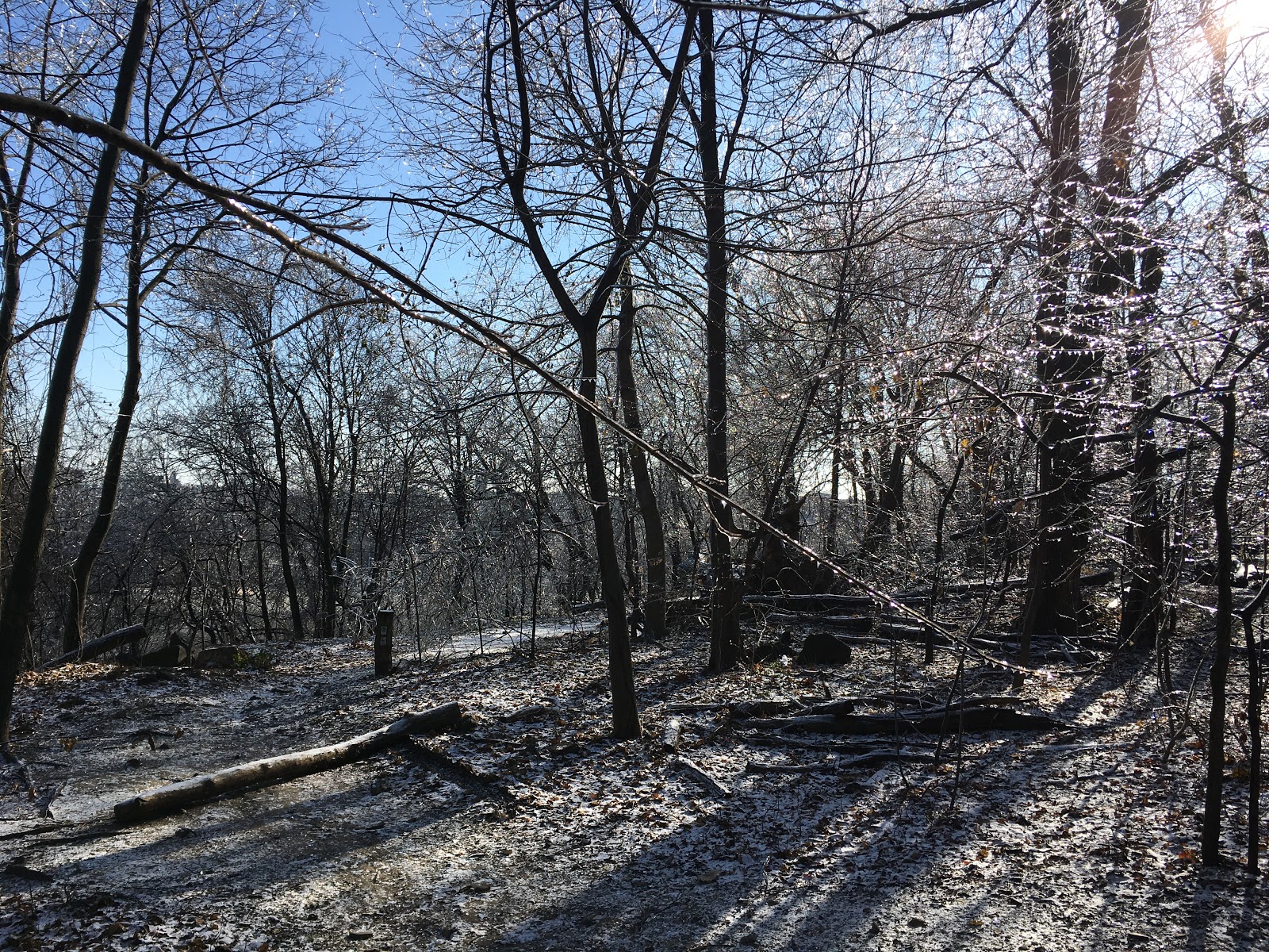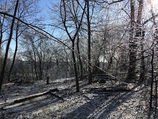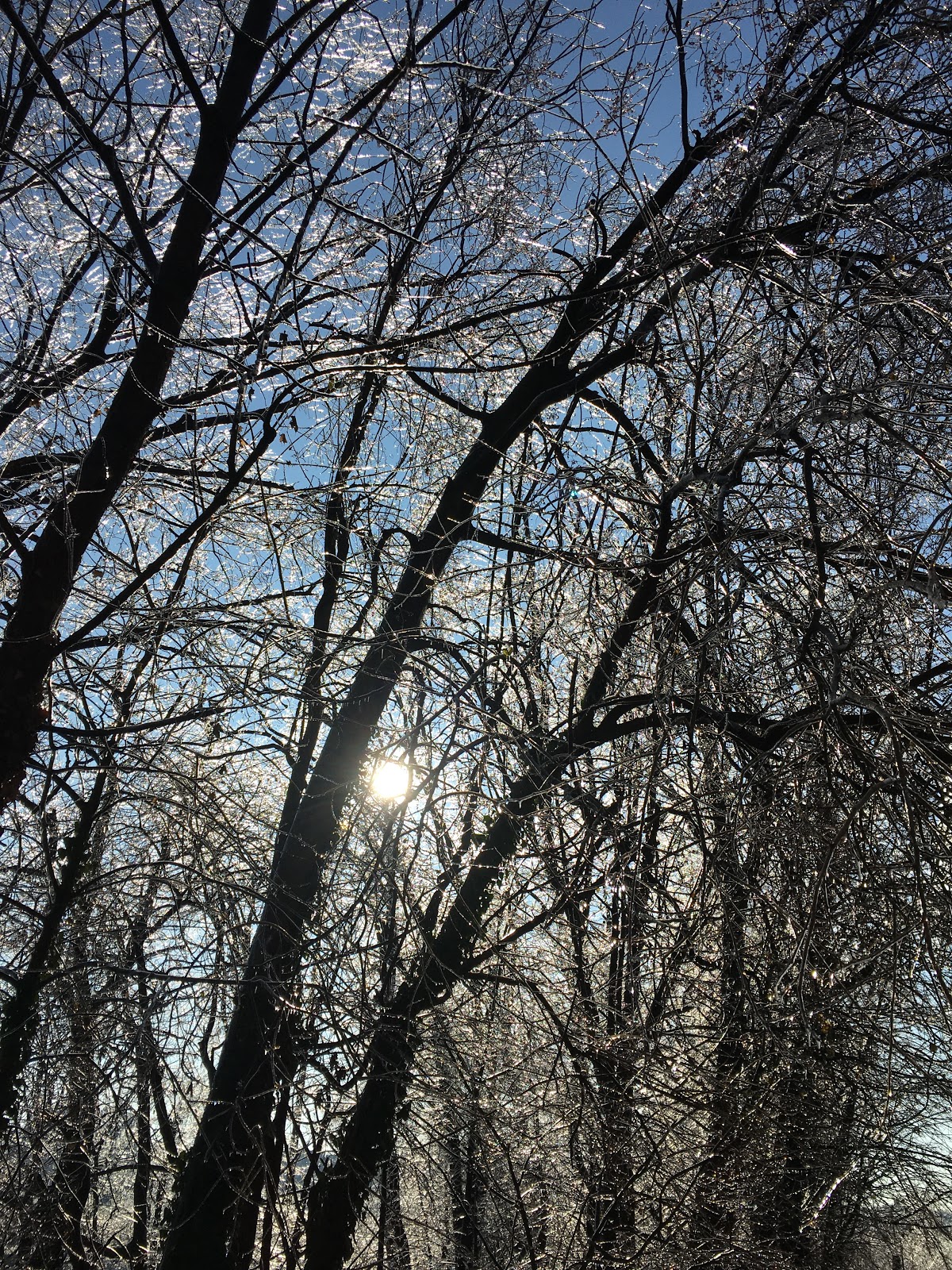 While it may look pretty, those heavy ice-encrusted tree boughs have been falling off lately, which is why I always wear my pedestrian helmet at this time of year.