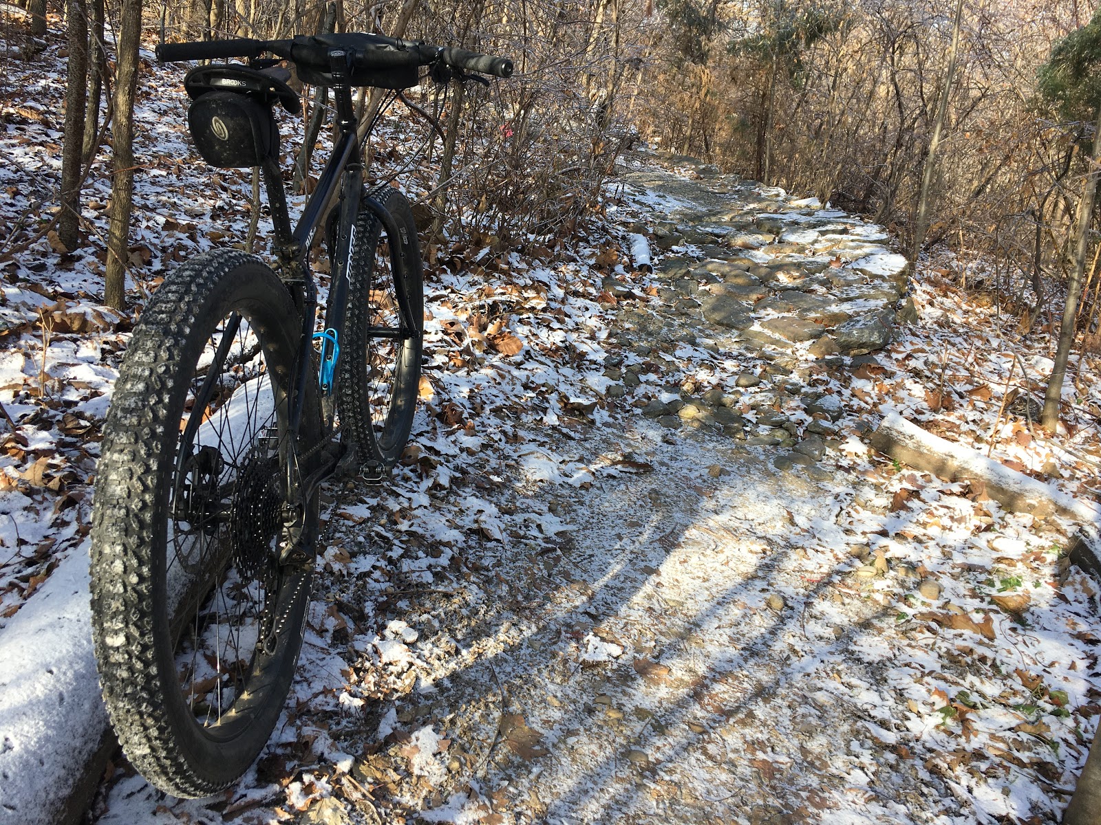 As for riding, freezing temperatures coupled with a dusting of snow presented me with a perfect excuse to hop on the Jones LWB and pop into Highbridge this morning: