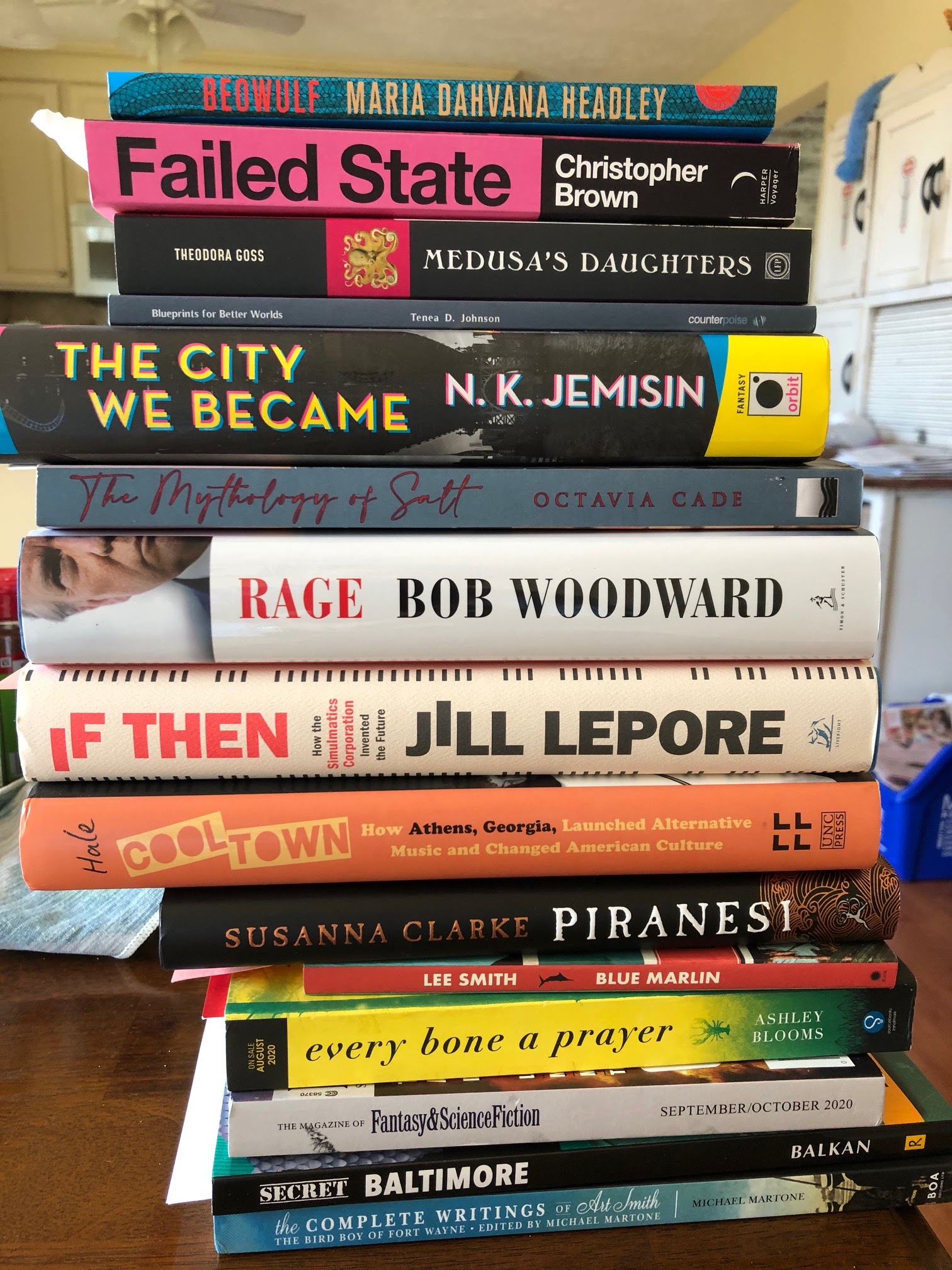 Clearly I overprepared for Sunday's Capclave panel titled Best Fiction of 2020, as there were (gasp) other people on the panel, with even taller stacks. And I was silly to think we'd have time to talk non-fiction, too.