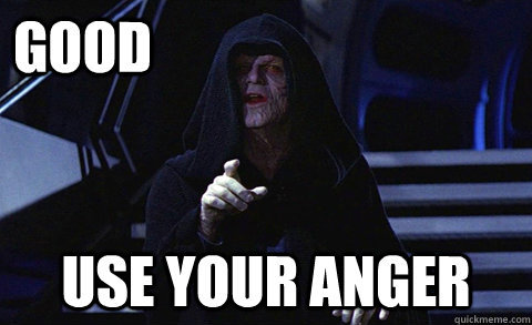 There are 6,000,000 memes and platitudes that exist about letting go of anger, allowing God to handle those who have wronged you, or my favorite:When something has been said to death like those phrases, they can lose their meaning, which is when you have to dig deep and try to really digest why they’re so popular.Talking (still) about my recent breakup, I’ve been somewhat surprised at the anger.  Not my anger, but that of pretty much EVERYONE around me.See, I was blessed with complete closure on the relationship.  I got to say EVERYTHING I wanted to say, and it was SUCH a relief.  Then I drank a bottle of wine with a friend, and my closure was complete.  I was ready to move up and move on!  It was liberating!But no one else who loves me got that.We don’t often think about how things that impact our lives also impact the lives of those who love us.  In this case, there are so many people who love me, watched me get hurt, and felt helpless.  These loved ones wanted to seek vengeance on my behalf!  They would avenge my honor no matter what!! And many of them had to be talked down off of the proverbial ledge.No, Button, we will not resort to physical violence.  No, Calypso, you may not take all of the trash and things he forgot and deliver it personally to his new girlfriend’s place of employment.  No, Lamar, you may not do…ANY of the things you’re thinking about doing.Seriously, it’s not worth the jail time or bad karma people!But the realization I had today during a conversation with another friend who is just ANGRY is that none of these amazing people I know have had the joy of closure like I have. So what about them?Unfortunately, they are in a position that we often find ourselves in during this life adventure of having anger without being able to diffuse it.  I mean, sure, they COULD do anything they want to make themselves feel better, except would it really?I’ve told them (even today) to let go and let God handle it.  But the reality is that is easier said than done.  When you are looking at someone you thought you knew and realize you don’t know them at all, or when a person hurt someone you love, or any one of a dozen scenarios, you want justice – you want to direct your anger somewhere, but oftentimes there just isn’t anywhere to send it.And that sucks.BUT the thing is that those platitudes and memes and corny sayings exist for a reason.  The best thing you can do for yourself in those situations is find a way to release it.  If it means making sure that you have zero reminders of that person/situation, do that.  If you have to make a voodoo doll of them and torture it, do that.  If you have to gather together all the other people who feel like you do and have a roast (figurative) of that person, do that.  Find some outlet for your anger, release it, and move on.Is this easy?  Not usually.  But at the end of the day, you’ll be better off if you can find a way to block those negative people and negative feelings from your life.Otherwise, the dark side wins…
