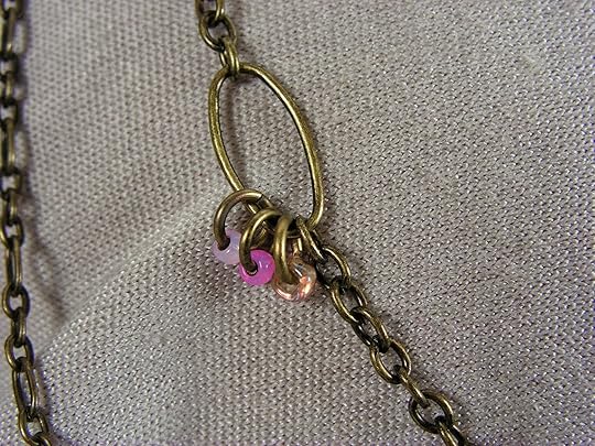 The jump rings with seed bead dangles carry the color of the focal throughout the piece and add that little hint of movement. I must confess though, putting seed beads on jump rings is a fiddly business, and one that sorely tests my patience. (Why oh why do I do this to myself?!???)