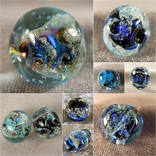 I've recently developed a 2.0 version of this bead - using a transparent cobalt core for the base puts a little more "blue" into the bead. The following collage shows how these beads turned out. The client I made them for is absolutely thrilled. What's your opinion of the 1.0 (black base) versus the 2.0 (cobalt blue base)?