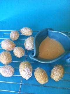 Tender, buttery, aromatic with citrus, the madeleines are as light as a passing thought. And then there's the fabulous caramelized honey cream to dip them in. Another piece of heaven!