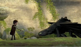 Cressida's series of Dragon books have been making readers laugh out loud for a long time, and now her work is transferred to the screen in How To Train Your Dragon, which opens in March. Here's a still from it, which I think is lovely; look at that CUTE dragon!
