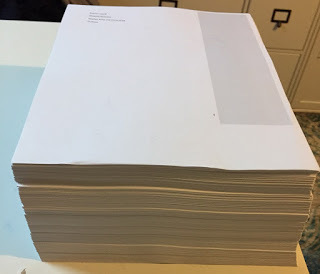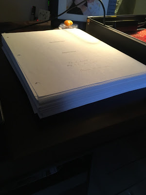 As an interesting comparison in closing (and because I thought it made a cool visual), below are two pictures of completed manuscripts. The first is the tree that was destroyed in stacking up Stephen King and Owen King's upcoming collaboration, Sleeping Beauties, and the second is a third draft manuscript to my second novel, The Painted Lady (which, at third draft, was around 71,000 words).