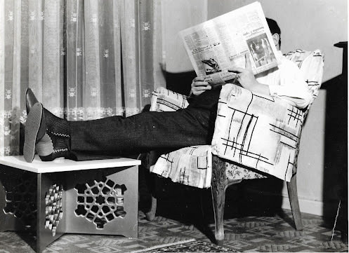 Beyfendinin rahatlığı hemen dikkat çekiyor. Adam,ayaklarını sehpanın üzerine uzatmış, gazetesine gömülmüş, yüzünün görünmemesi,bireysel mahremiyetin altını çiziyor; o yılların fotoğraflarında sıkçarastlanan “poza hazırlanmışlıktan” eser yok. Bu daha spontan, sanki daha içselbir an.