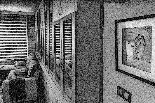 Perdeler dantel motifli; salon “misafir gelir” ihtimaliüzerinden kurulmuş en büyük oda. Sehpa ise neredeyse el işçiliğini andıranoyma yüzeyiyle yerli-modern bir "heykel" gibi. Ev, hem eskiyle barışık hem yeniyeözenen bir ruh taşımakta.