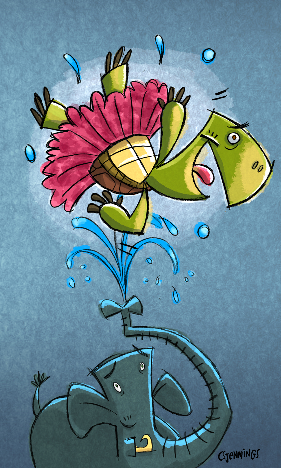 The moment I read "turtle, tutu, elephant"I saw this in my head. I wanted "warm" & "friends."