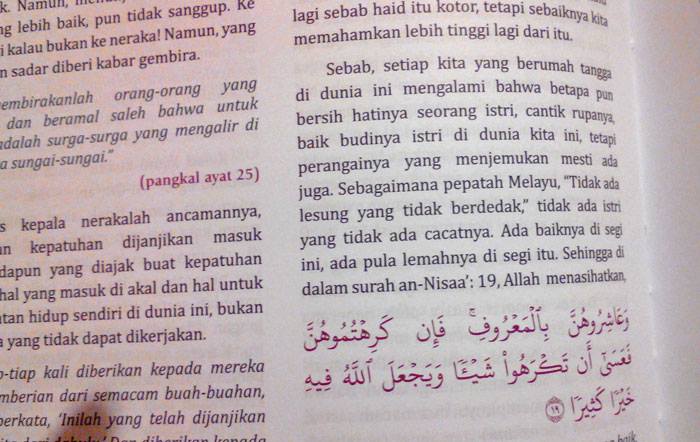 Masya-Allah. Tabarakallah. Betullah kata orang yang almarhum menafsir dengan gabungan elemen sejarah, sosiologi, tasawwuf, ilmu kalam, sastera dan psikologi. Banyak sekali saya jumpa kosa kata bahasa Melayu (juga Minang), tamsil ibarat dan kata-kata indah yang menusuk ke dalam nubari.