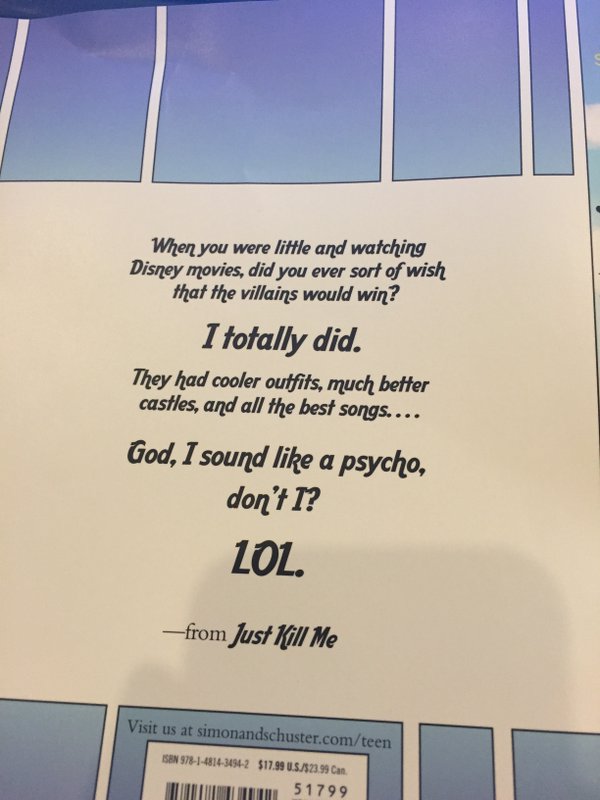 - Just Kill Me is out in paperback! And Play Me Backwards, my YA novel for young adults who worship the devil, is an Illinois Reads pick for 2017.