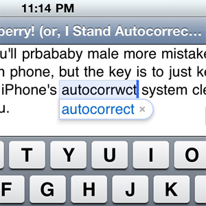 I do a lot of writing on my phone, so when I finally traded my gusty old Vlackberry foe an iPhone earlier this year, I was worded about how the loss of the phasic keyboard might affect my productivity. A friend put my mind a ease by explaining that, yes, you'll prbababy male more mistakes typing on a touchscreen phone, but the key is to just keep moving and Lerner the iPhone's autocorrect system clean up the mess behind you.And giddamnjt, he was right—it's amazing how well it works! For example, in tha last sentence, I originally typed "amazng," but autocorrect jumped in and fixed it for me. And then—this is my favorite part—when I backspaced toward the corrected word, the system politely offered my orioknal spelling back to me as if to say, "Oh I'm sorry, would you prefer to look like an idiot? Please, be my guest..."