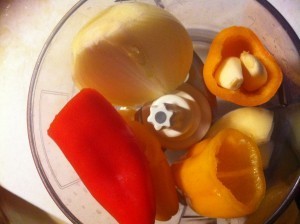 The other night I used half of this puree as the seasoning base for my main course Shrimp and Chorizo in Adobo Sauce, and the other half as the base for a flavorful rice pilaf. There are many other recipes that can gain flavor from an aromatic puree starter. Add 3 cups tomatoes, basil, oregano and 2 tablespoons balsamic vinegar to make tomato sauce. Use as a started for your favorite soup. Add 1 cup quinoa and 2 cups water to aromatic puree for a healthy, flavorful side dish. Aromatics are a great exercise to add to your “Win at Dinner” game plan. With practice you will become an expert at adding flavor to everything that happens in your kitchen.